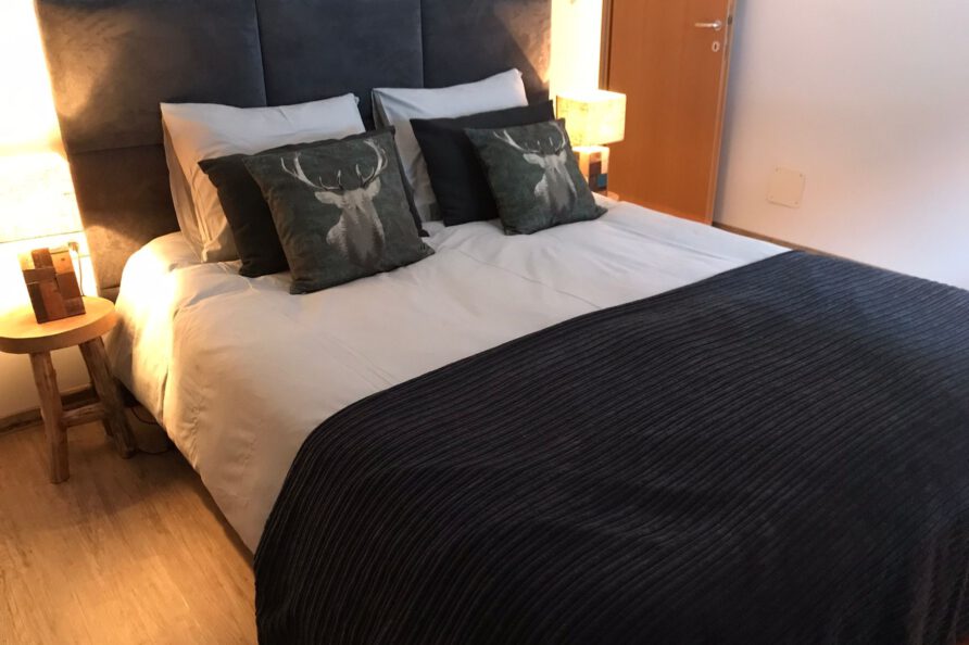 This apartment in brand has 2 bedrooms, one of them has a queensize double bed the other bedrooms has a bunkbed which can sleep max 3 children. Next to this there is a sofabed in the living room. The living area has an open concept with, kitchen, dining area, couch, tv and a reading corner. The 12m2 terrace is situated with a beautiful view towards the Austrian alps.